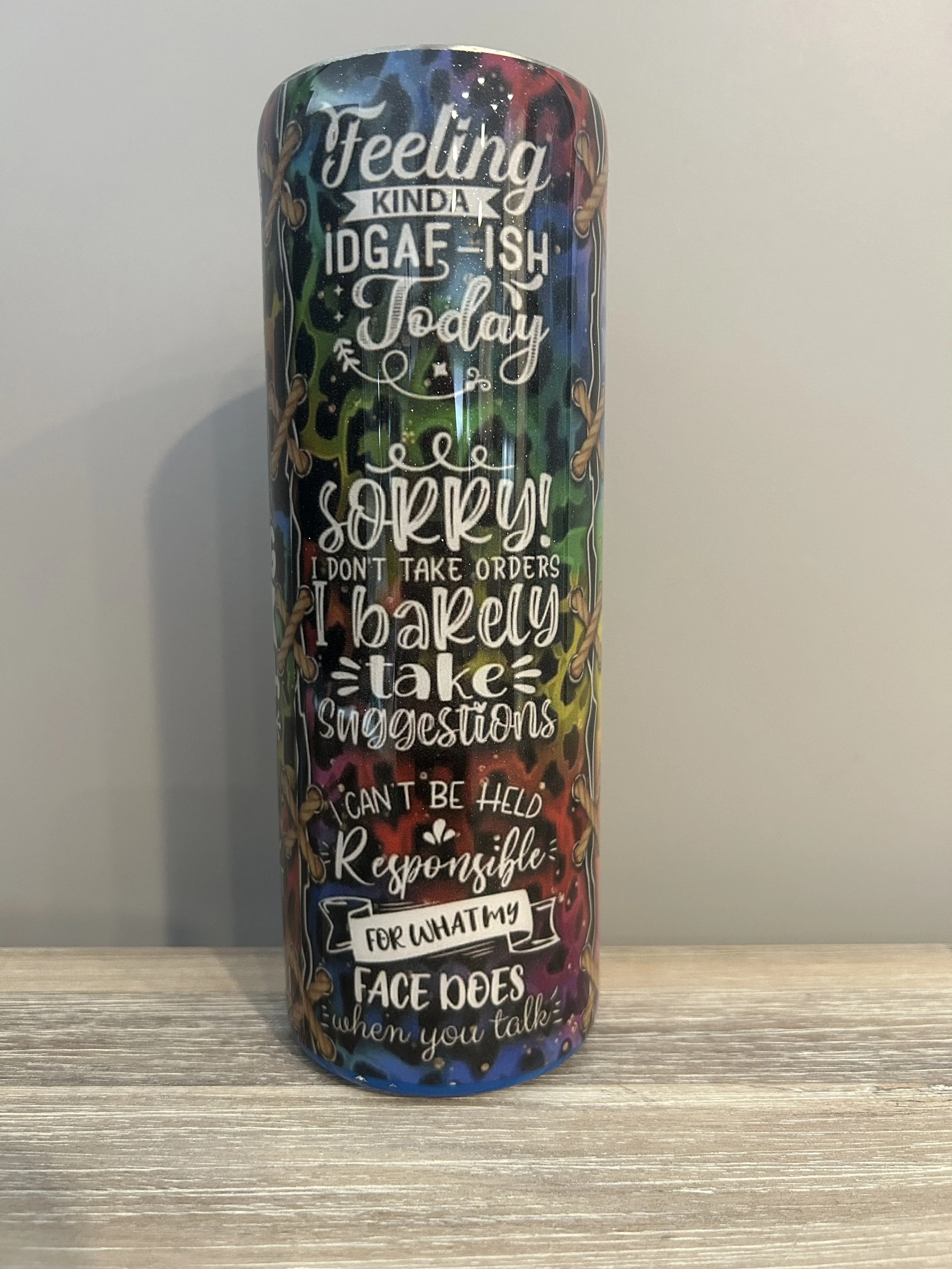 Categories: All Shot Bookmarks 25 oz Fall Specialty 30 oz Tumbler Valentine Mug Christmas Tumblers Pens 20 oz Tumblers 12 oz Kids Wine Tumblers All | Shot | Bookmarks | 25 oz | Fall | Specialty | 30 oz Tumbler | Valentine | Mug | Christmas Tumblers | Pens | 20 oz Tumblers | 12 oz Kids | Wine Tumblers | I'm Sorry if you Find..... $35.00 It's Fine..... $35.00 My Spirit Animal.... $35.00 I'm not Crazy.... $25.00 Wine.....not good to keep bottled up! $25.00 Wine Because you can't run..... $25.00 Without Coffee..... $35.00 Mutiple Sassy Sayings $35.00 Aztek Longhorn $35.00 Marble Look $35.00 Glow in the Dark Skull $35.00 Skull and Lace Holographic $35.00 Dripping Crayon $35.00 Holo Floral $35.00 Welcome to the S Show $35.00 Level of Sarcasm $35.00 Best Mum $35.00 Teacher Fuel $35.00 Attention...out of order $35.00 Stuck Between.... $35.00 Hockey Coach $35.00 World's Okayest Brother $35.00 Purple holographic $35.00 I Never Dreamed $35.00 D and D $35.00 JD Shot $15.00 Fireball Shot $15.00 I Would Fight a Bear/Sister $25.00 Drinkerbell $25.00 If Swearing Burned Calories..... $25.00 $35.00 Day Drinking $25.00 Take me to the Mountains $25.00 Friends $25.00 Prescription Coffee $25.00 Marshmellow Face $25.00 Good Morning $25.00 Oh What Fresh...Good Morning $25.00 Perfectly Imperfect $35.00 Love who you want $35.00 Seahorse $25.00 Oh, for Fox Sake $35.00 Purple Geode $35.00 My Attitude...... $35.00 Hugging Giraffes $35.00 Mom, custom order $35.00 Busy Being a Bunny Mama, custom order $35.00 This Nurse is really Dragon today $35.00 Feeling IDGAF-ISH today $35.00 Love is Love $35.00 Anime, custom order $25.00 Reach for the stars $25.00 Drink your Water B*tch $45.00 A Penny for your thoughts seems a bit pricey $35.00 I speak my mind because it hurts to bite my tongue $35.00 It's Fine, I'm Fine, Everything is Fine $35.00 Dad $35.00 Watercolor Unicorn $35.00 Glitter and Skulls $35.00 Mom Vocabulary $35.00 Funcle $35.00 In Dog Wine...... $25.00 But First, Coffee $25.00 Take me to the mountains.... $25.00 She is like a wildflower.... $35.00 I like Dogs..... $35.00 Just one more chapter $35.00 Dragonfly $35.00 Life without coffee is like..... $35.00 Cinnamon Whiskey $35.00 Bride and Groom $25.00 Being a Grandma...... $25.00 Just Give a Girl.... $25.00 Bookmarks $10.00 Kids Cup $25.00 Apparently we are trouble..... $25.00 Skull $45.00 Skull and Flowers $45.00 Faith $45.00 From the bottom of my Heart..... $25.00 Neon Swirl $10.00 Mermaid $10.00 Day Drinking $25.00 Dish soap Neon Swirl $35.00 Leopard Swirl $35.00 The Cape Crusader $25.00 Beach Tumbler $35.00 Milky Way $25.00 Wine goes in Wisdom comes out $25.00 Sweater Weather $35.00 Sunshine mixed with a little Hurricane $35.00 Kind of busy being a dog mom $35.00 World's Okayest Husband $40.00 Spidey $25.00 JD Barrel $40.00 Just a Girl who loves books $35.00 Funcle $35.00 Duct Tape $35.00 Lake Life $35.00 School Bus $35.00 Woodgrain $35.00 Skull Candy $35.00 Give a Girl $35.00 Brushstroke leopard print in gold $35.00 Happy Fall $35.00 Red and Black guy $25.00 Motorcycle $45.00 Be a Mermaid $35.00 This is me adulting $25.00 Good Vibes $0.00 Wine cups with Toppers $30.00 Skull $45.00 Day Drinking $35.00 Teacher Pencil $25.00 Bride $25.00 Adulting is hard $25.00 Wine a little laugh a lot $25.00 I make Wine disappear, what's your super power $25.00 I was Born to be Wild, But only until 9pm or so... $25.00 Liquid Therapy $25.00 Baby it's Cold Outside $25.00 Woodgrain Look $25.00 Pink Geode $45.00 Teacher Pencil 30oz $45.00 Hold my drink while I pet this dog $35.00 Dad $35.00 Look of Leather $35.00 Hearts $25.00 X's and O's $35.00 Grandma $25.00 From the Bottom of my Heart $25.00 True Crime, Wine and Bed by Nine $25.00 I Used to be Married but I'm Better Now $25.00 Sarcasm $25.00 Reach for the Stars $25.00 Mermaid $50.00 Coffee Strong Lashes Long Hustle On $35.00 Just a Girl who loves Horses $35.00 Sometimes I Talk to Myself and Then we both Laugh and Laugh $35.00 Just a Girl who Loves Books $35.00 F-Bomb Mom $35.00 Busy Being a Dog Mom $35.00 Floral $35.00 Neon Zig Zag $35.00 Flowers with Stripes $35.00 Girl with clock and Flowers $35.00 I looked up my Symptoms $25.00 And there goes...... $25.00 Valentine Wine $25.00 I'm just a little Slothee $25.00 Elsa $25.00 Purple Unicorn $25.00 Shhh I Deserve this $25.00 Silly Snowman $25.00 Christmas Gnome $25.00 Ho Ho Holy Sh*t $25.00 Snow People $25.00 Leopard print pen $10.00 Beach Please $10.00 Rhinstone Ombre' $90.00 I want to be a dinosaur $25.00 Beaches Booze and Besties $25.00 Not a day over Fabulous $25.00 Black and Gold Leopard $25.00 Sold out Skull with Sunflowers $35.00 Sold out I am the Storm $35.00 MOM $35.00 MAMA Leopard $35.00 Families are like Quilts $35.00 Leopard Print white/purple MAMA $35.00 Sold out Wolf $35.00 I hate everyone but coffee helps $35.00 Your problem is not my problem $35.00 I'm only talking to my dog today $35.00 Buck $35.00 Life is Better at the Beach $35.00 Reach for the Stars $35.00 Skulls and Sunflowers $35.00 Leather Look $35.00 Live a Life with Purpose $35.00 Diamonds and Glitter $35.00 Beach wine tumbler $25.00